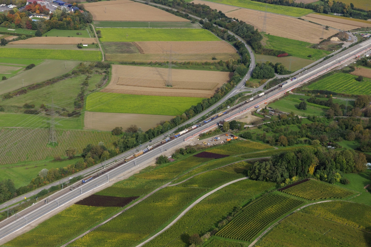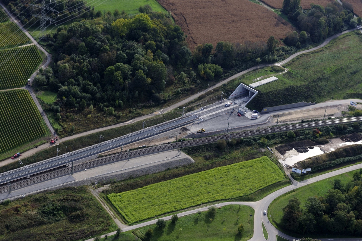 Im Dezember 2012 war die Bahn·strecke zwischen Schliengen und Eimeldingen fertig. Seitdem fahren die Güter·züge nachts durch den Katzenberg·Tunnel.