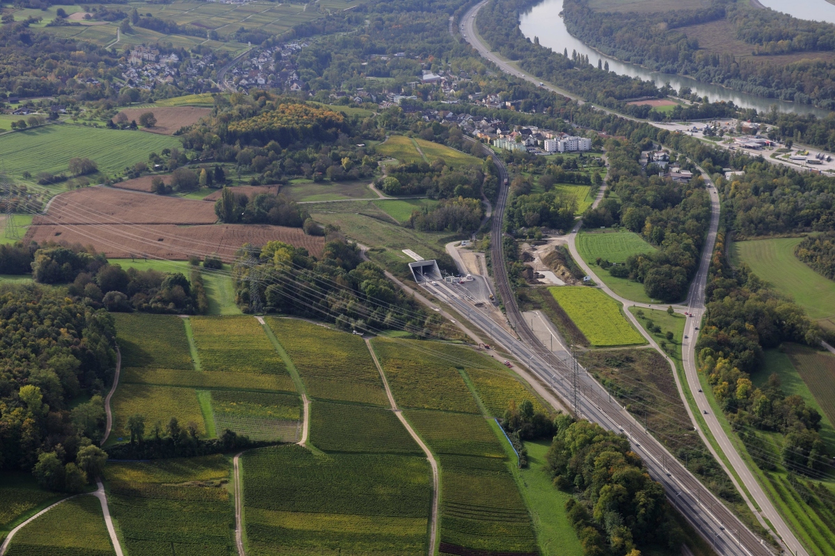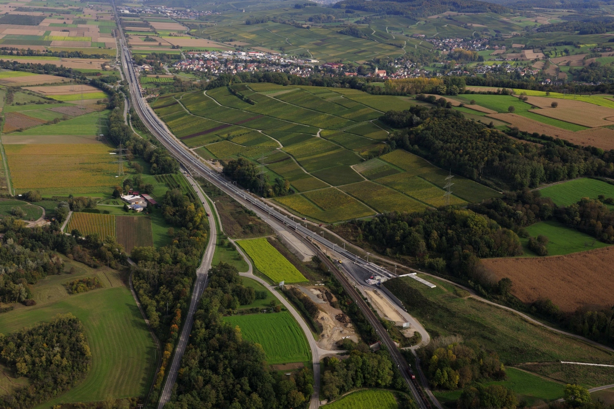 Die neue Bahn·strecke geht bei Schliengen weiter zum Katzenberg·Tunnel.