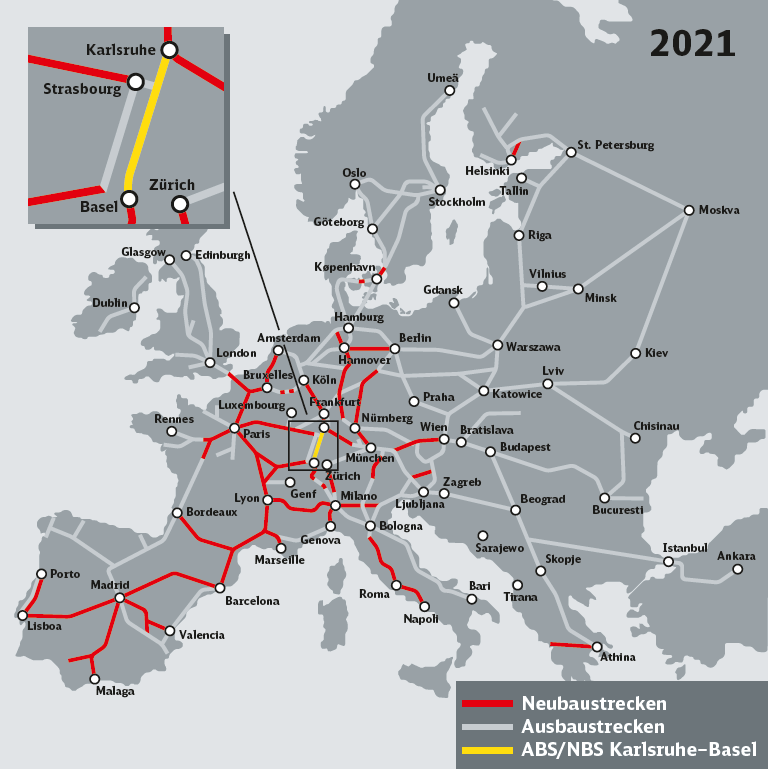 ist ein Teil von der wichtigsten Bahn·strecke in Europa.